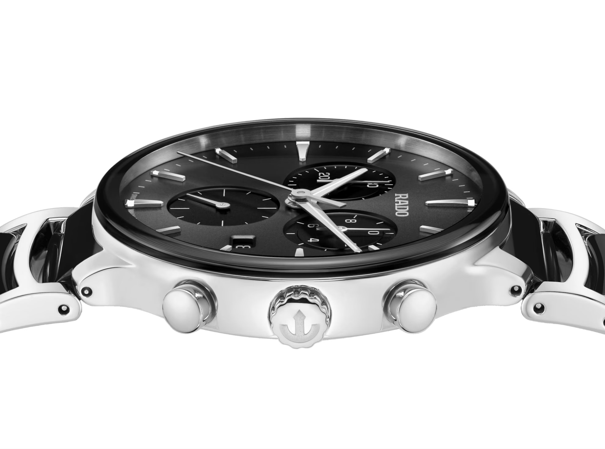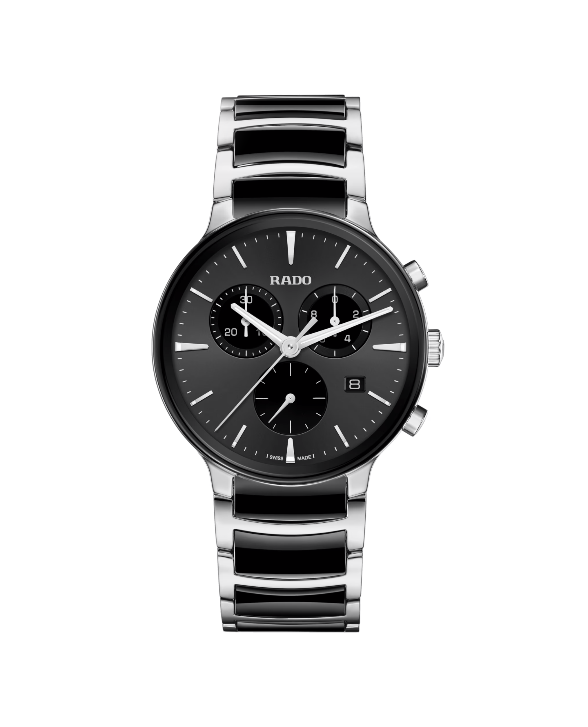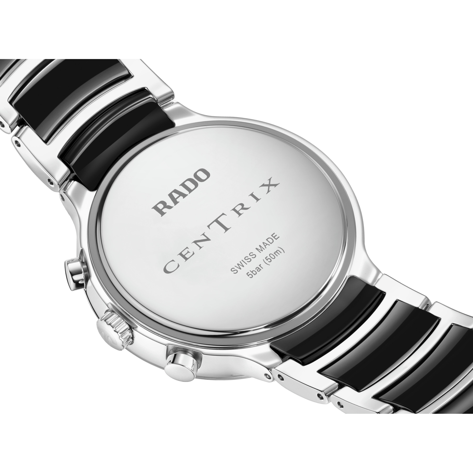 Behuizing: Gemaakt van hoogwaardig roestvrij staal, gecombineerd met zwarte high-tech keramische schakels in de band voor een moderne uitstraling.