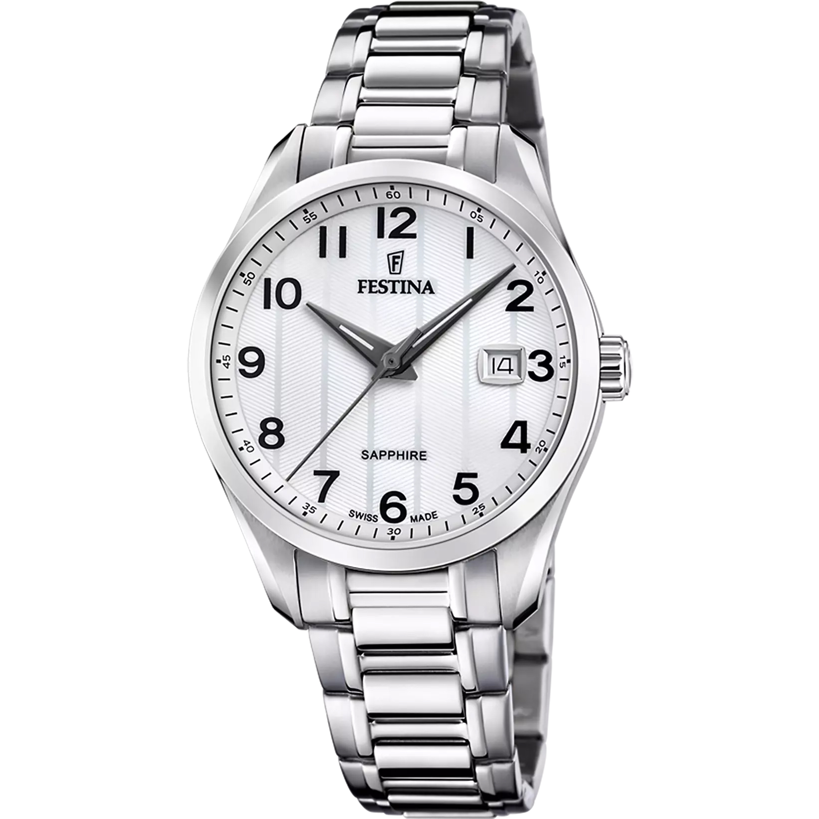 Festina Swiss heren horloge F20026/1 met een roestvrij staal kast en een saffier glas met een roestvrij staal band/armband.