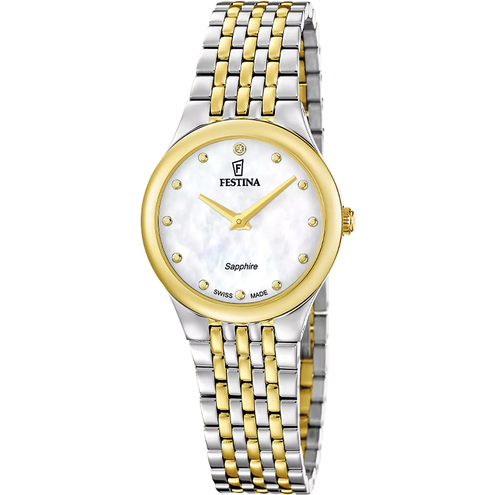 Festina Swiss Made dames horloge F20097/1 met een roestvrij staal kast en een saffier glas met een roestvrij staal band/armband.
