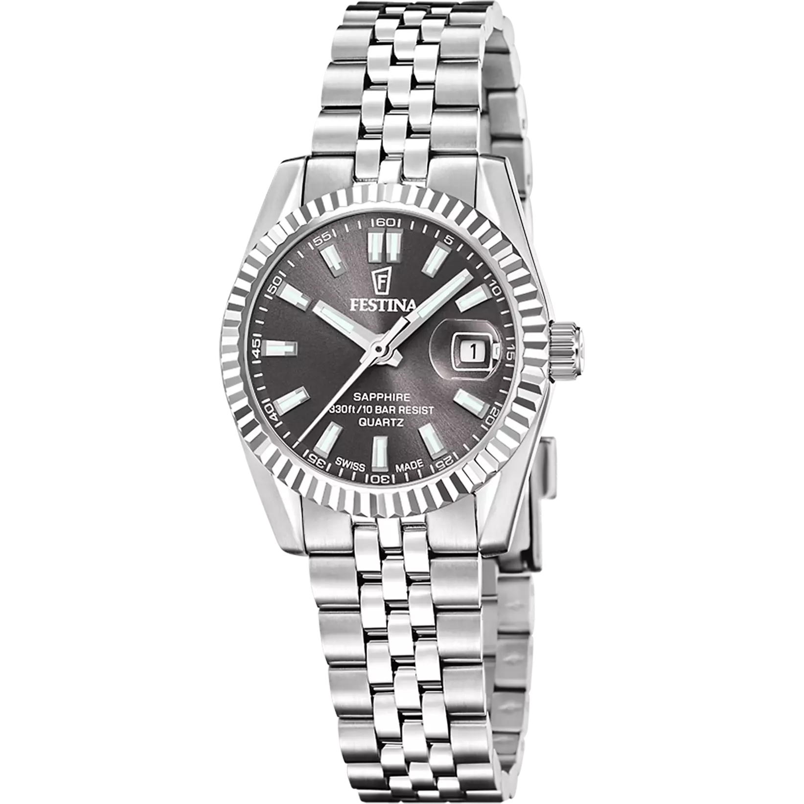 Festina Swiss Made dames horloge F20087/6 met een 316l roestvrij staal kast en een saffier glas met een roestvrij staal band/armband.