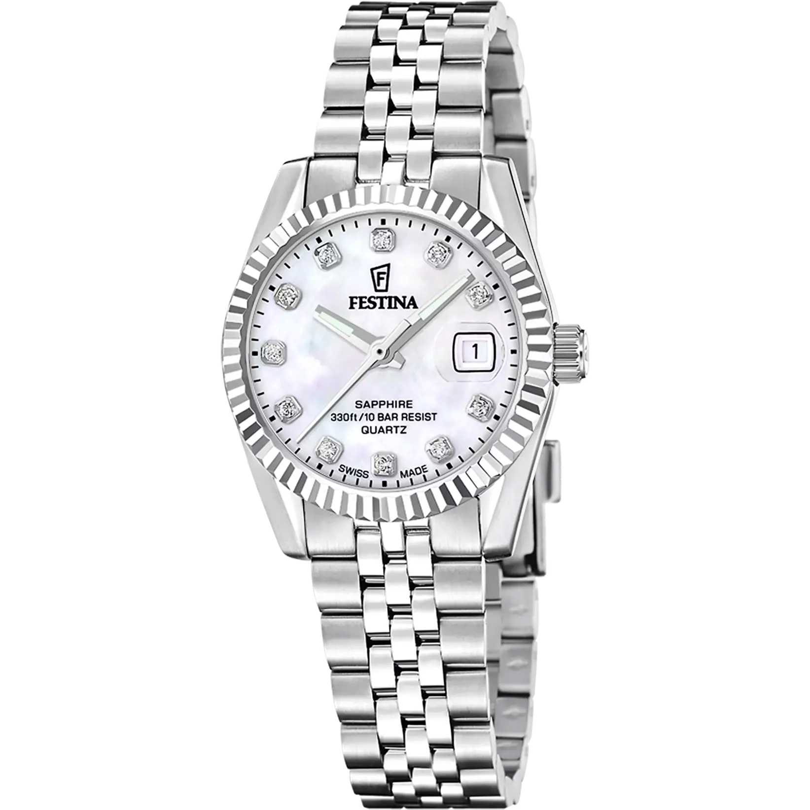 Festina Swiss Made dames horloge F20087/1 met een 316l roestvrij staal kast en een saffier glas met een roestvrij staal band/armband.