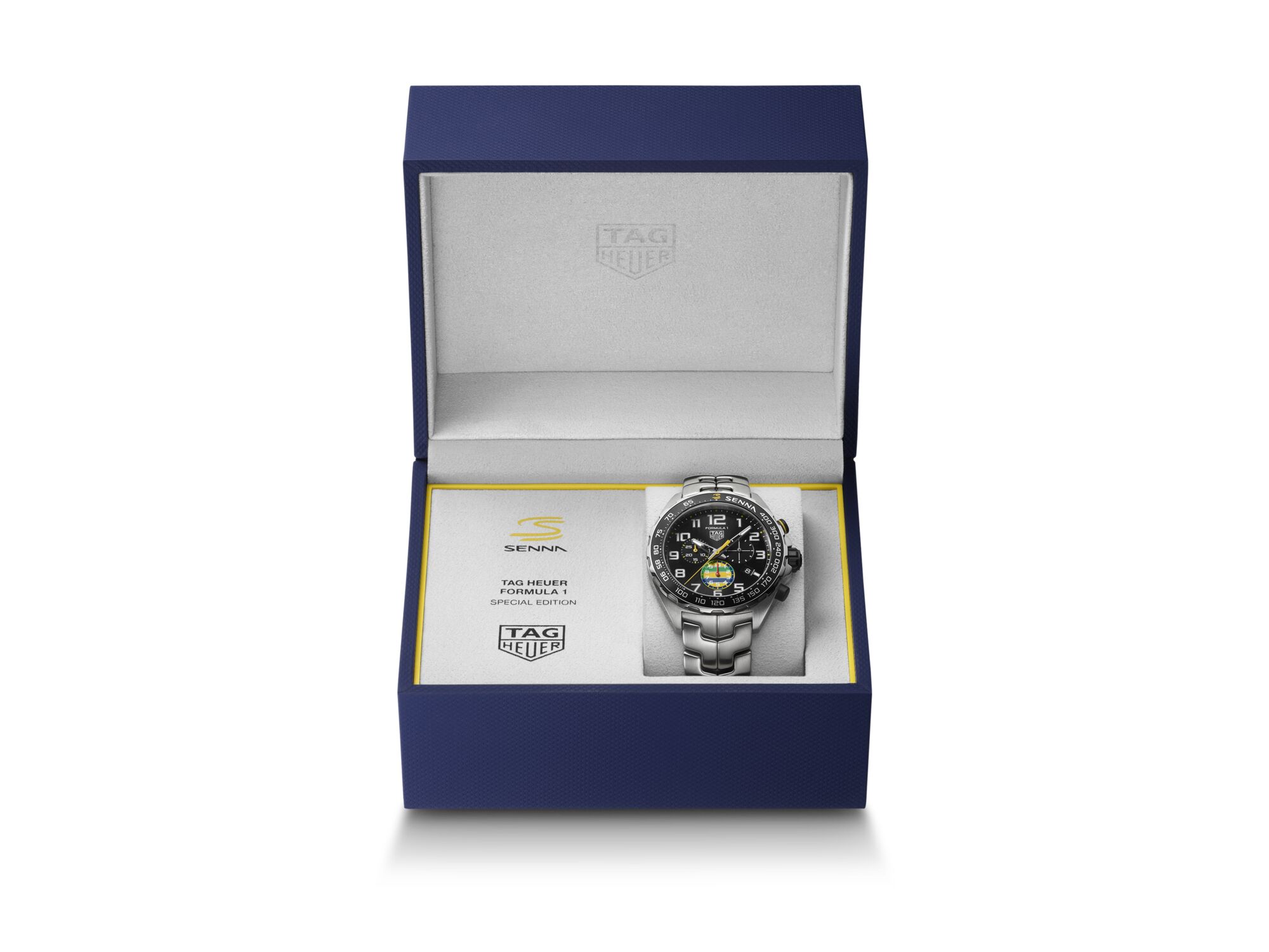 Het TAG Heuer Formula 1 Senna Special Edition is een dynamisch eerbetoon aan racing-legende Ayrton Senna. Dit exclusieve horloge vangt de onmiskenbare snelheid, passie en precisie waarmee Senna de Formule 1 domineerde. Het ontwerp verwijst naar Senna’s iconische stijl, met sportieve details als geel, groene en blauwe accenten, een stoere stalen armband en het bekende "S"-logo. Dankzij de robuuste materialen en het nauwkeurige Zwitserse uurwerk is dit horloge een must-have voor zowel autosportliefhebbers als horlogeverzamelaars die de nalatenschap van Senna willen eren.
