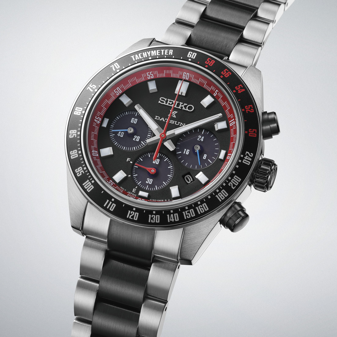 Deze gelimiteerde editie (4.000 stuks wereldwijd) viert het gezamenlijke erfgoed van Seiko’s Speedtimer (1969) en de legendarische Datsun 240Z rallyauto die de East African Safari Rally in 1971 won, compleet met Seiko-logo op de wagen.