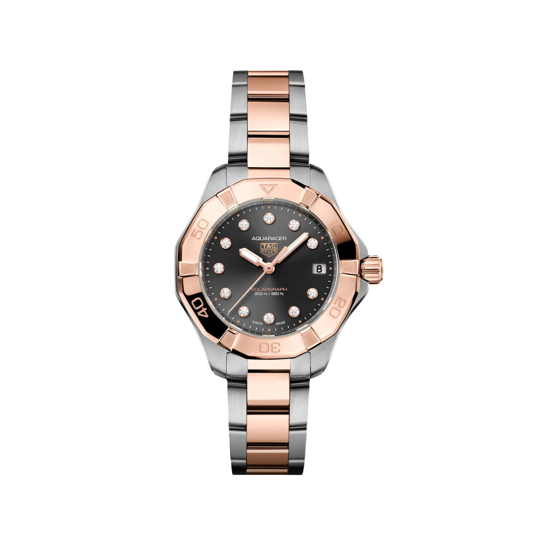 De TAG Heuer Aquaracer Professional 200 Solargraph combineert elegantie en prestaties en biedt een verfijnde interpretatie van het veelzijdige horloge van Maison. De zwarte wijzerplaat met diamanten indexen roept de etherische schoonheid van het noorderlicht op en viert stijlvol de ontdekkingstocht.