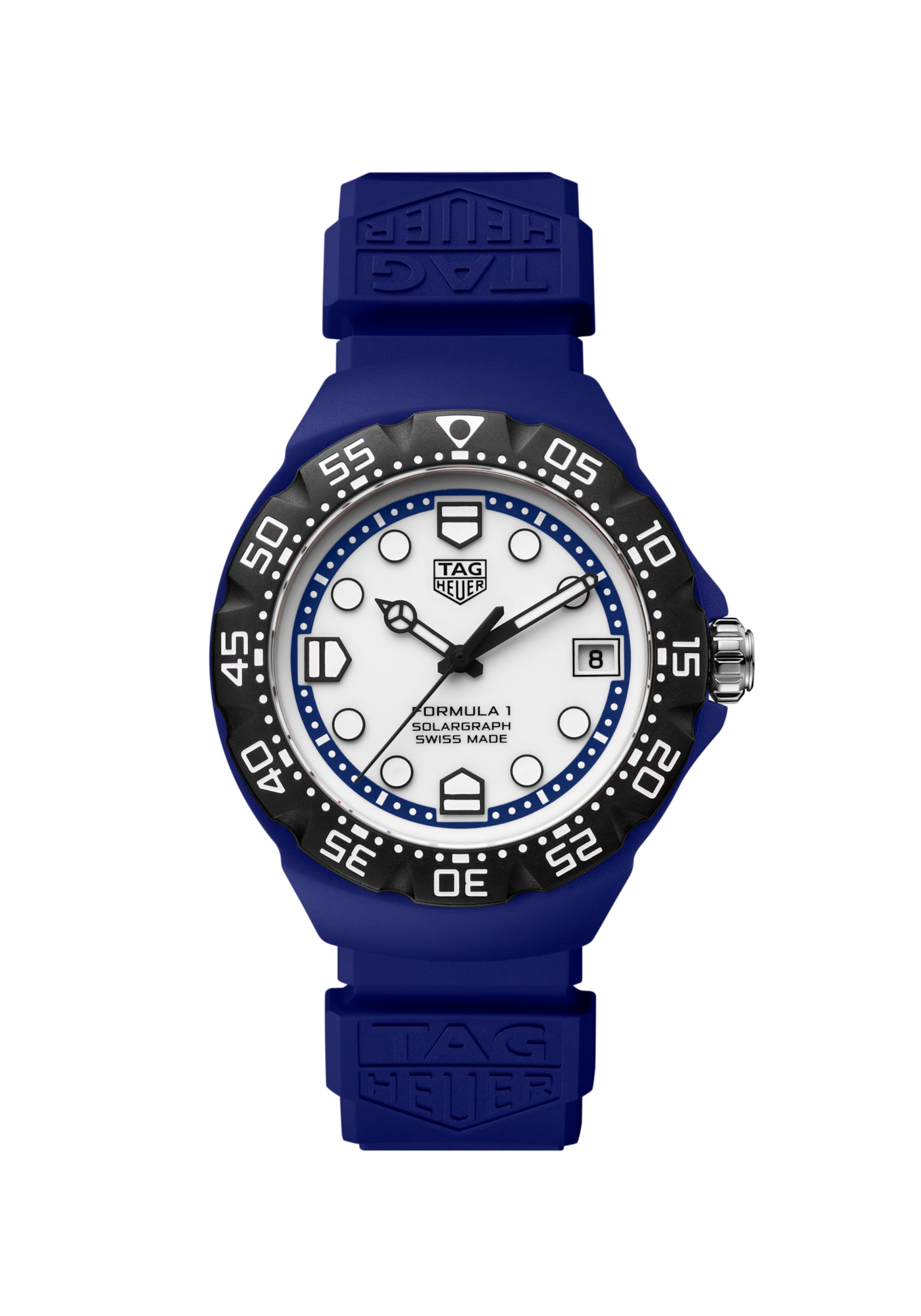De TAG Heuer Formula 1 Solargraph (38 mm) maakt een gedurfde statement met zijn levendige blauwe TH-Polylight kast en zonne-energie precisie. Dit limited edition horloge combineert innovatieve materialen en hoogwaardige technologie en is een frisse kijk op het originele Serie 1 horloge uit de jaren '80.