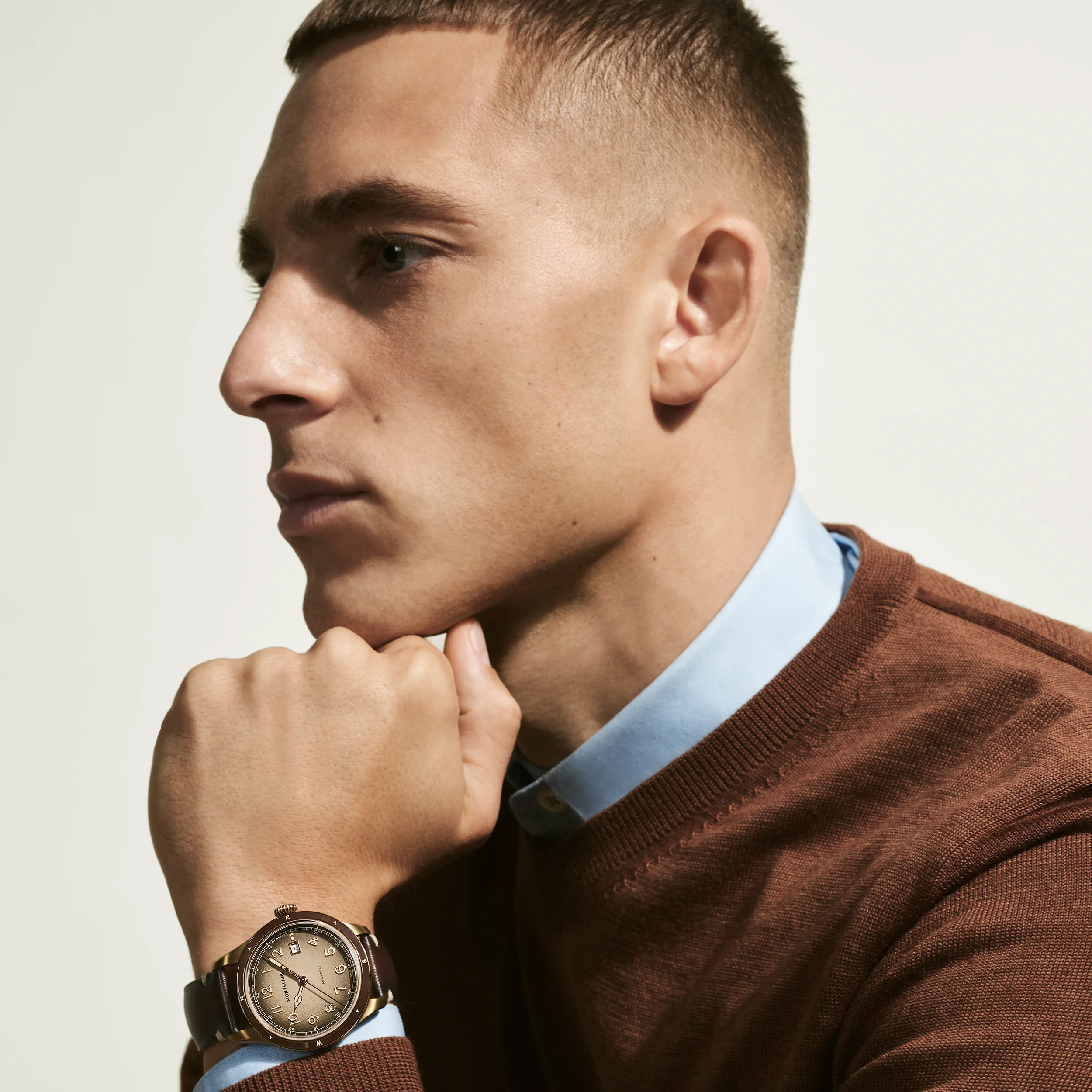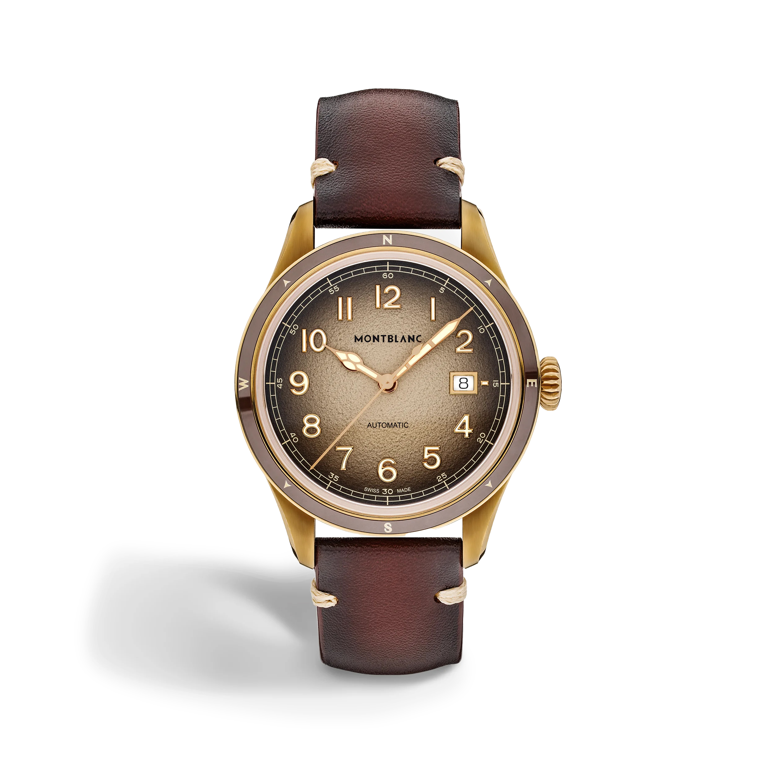 Het Montblanc 1858 horloge in brons is een eerbetoon aan de avontuurlijke geest van de vroege alpinisten. Dit stijlvolle uurwerk valt op door zijn warme bronzen kast, die in de loop der tijd een unieke patina ontwikkelt en zo elk horloge volledig uniek maakt. De speciale wijzerplaat met vintage geïnspireerde Arabische cijfers, kathedraalwijzers en het kenmerkende Montblanc-embleem straalt klassieke elegantie uit. Met een automatische uurwerk, krasbestendig saffierglas en waterdichtheid tot 100 meter combineert de Montblanc 1858 traditie, vakmanschap en sportieve luxe in één opvallend design. Ideaal voor liefhebbers van karaktervolle uurwerken die kwaliteit en tijdloze schoonheid waarderen