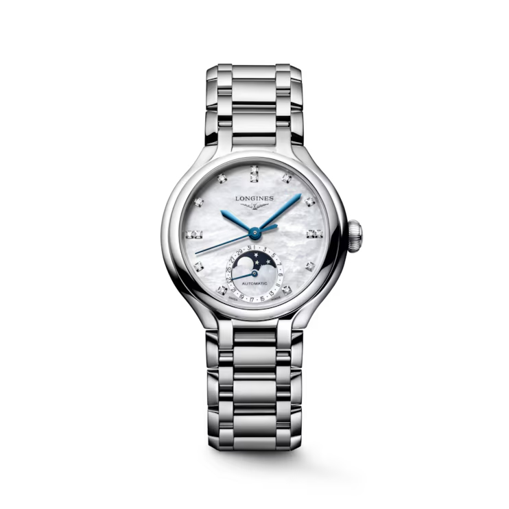 De PrimaLuna-collectie van Longines is een elegante dameslijn die bekend staat om haar verfijnde, ronde horlogekasten en tijdloze design. Geïnspireerd door de zachte gloed van de maan, combineert deze collectie subtiel vrouwelijke lijnen met hoogwaardige materialen zoals roestvrij staal, roségoud en diamanten. De PrimaLuna-horloges zijn verkrijgbaar met zowel quartz- als automatische uurwerken en zijn voorzien van klassieke Romeinse cijfers en een verfijnde wijzerplaat. Deze collectie belichaamt de perfecte balans tussen elegantie, traditie en hedendaags vakmanschap – ideaal voor vrouwen die waarde hechten aan stijl en kwaliteit.