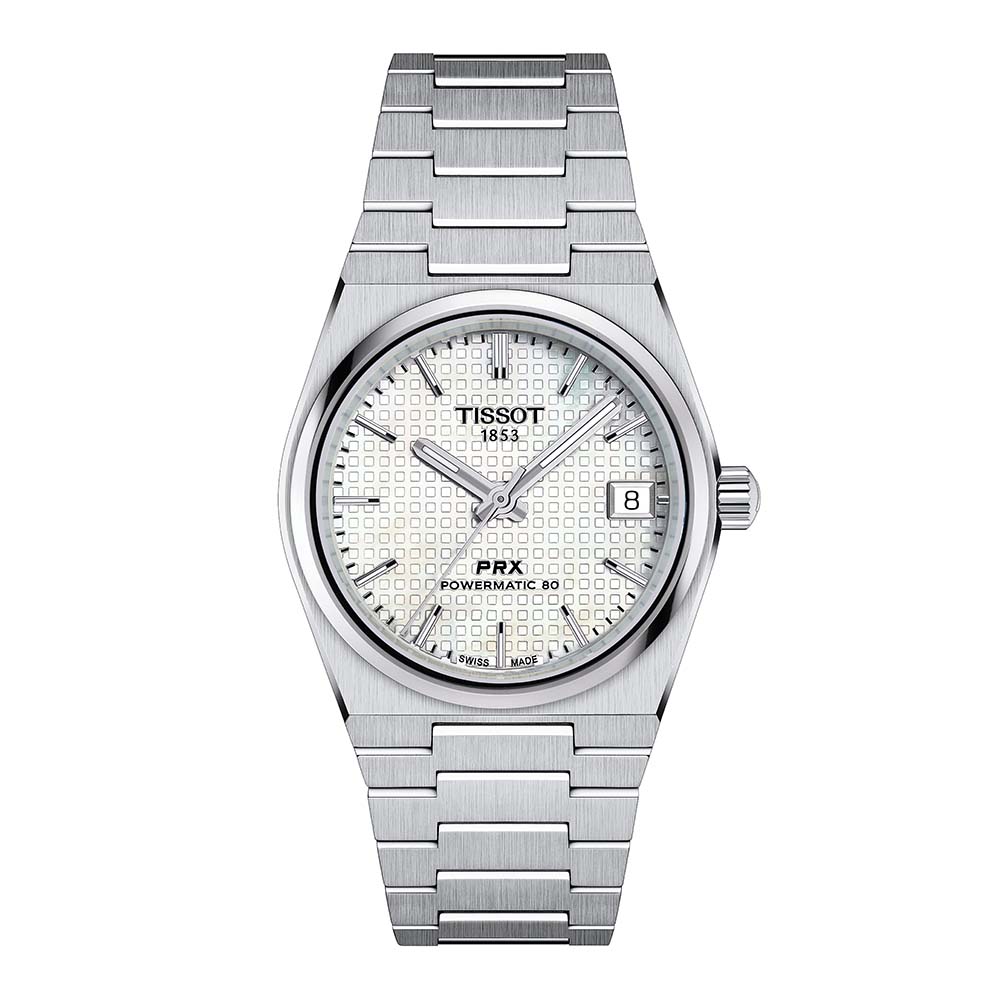 Dit 35 mm dames horloge heeft een hoogwaardige stalen kast en een betoverende parelmoeren wijzerplaat, geïnspireerd op zijn beroemde voorganger uit 1978. Het opvallende wafelpatroon van de wijzerplaat voegt een extra laagje elegantie toe aan het automatische model. De satijnen stalen band met een drievoudige vouwsluiting van staal garandeert de hele dag comfort.