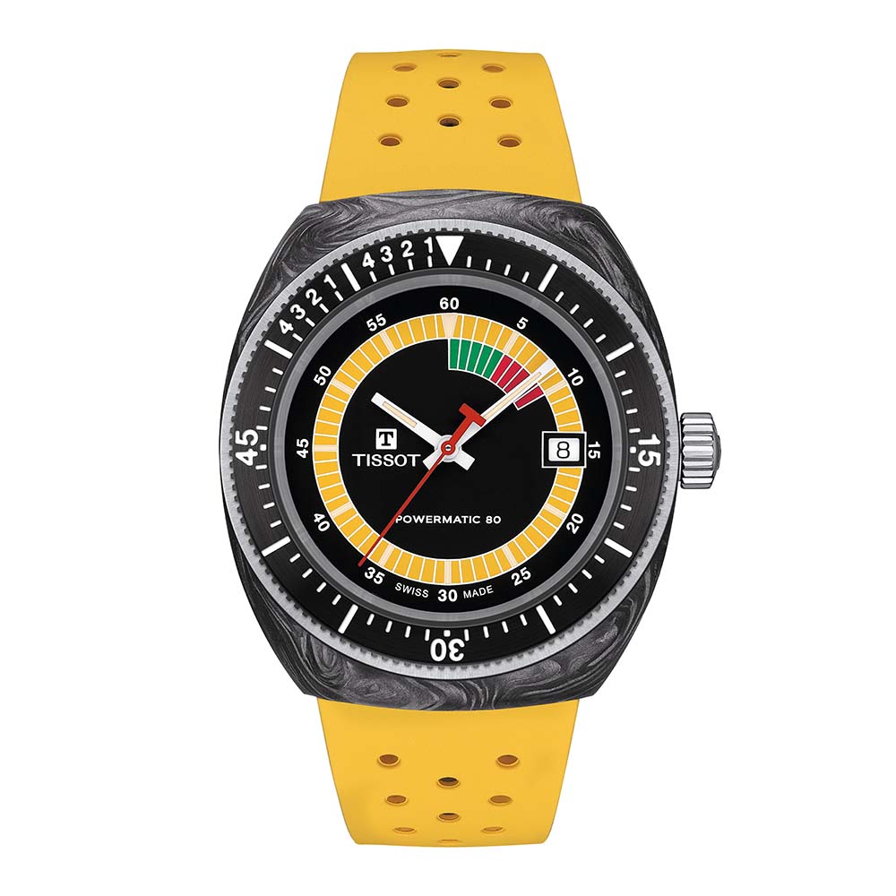 Ontdek de Tissot Sideral, een fascinerende fusie van vintage allure en modern vakmanschap. Het horloge heeft een 41 mm brede kast van gesmeed carbon en een levendige gele band, als eerbetoon aan de iconiscche wortels uit de jaren 70. De wijzerplaat vertoont een veelkleurige lichtgevende animatie, die zijn unieke charme versterkt. Waterbestendig tot 300 meter en uitgerust met SuperLumiNova gecoate indexen, is de Sideral een statement stuk voor trendsetters en liefhebbers van geschiedenis.