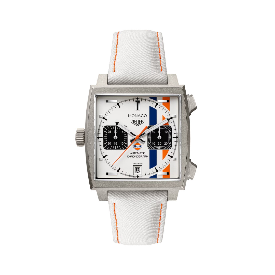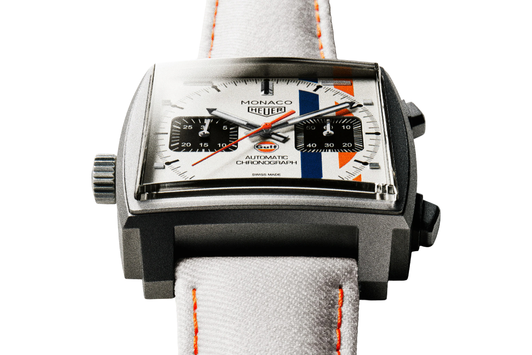 Unleashing the spirit of the ‘70s on the wrist, the TAG Heuer Monaco Chronograph x Gulf salutes TAG Heuer’s legendary partnership with Gulf. With its unique color stripes and vintage charm, this limited-edition piece is a true emblem for racing aficionados and design connoisseurs. LIMITED EDITION