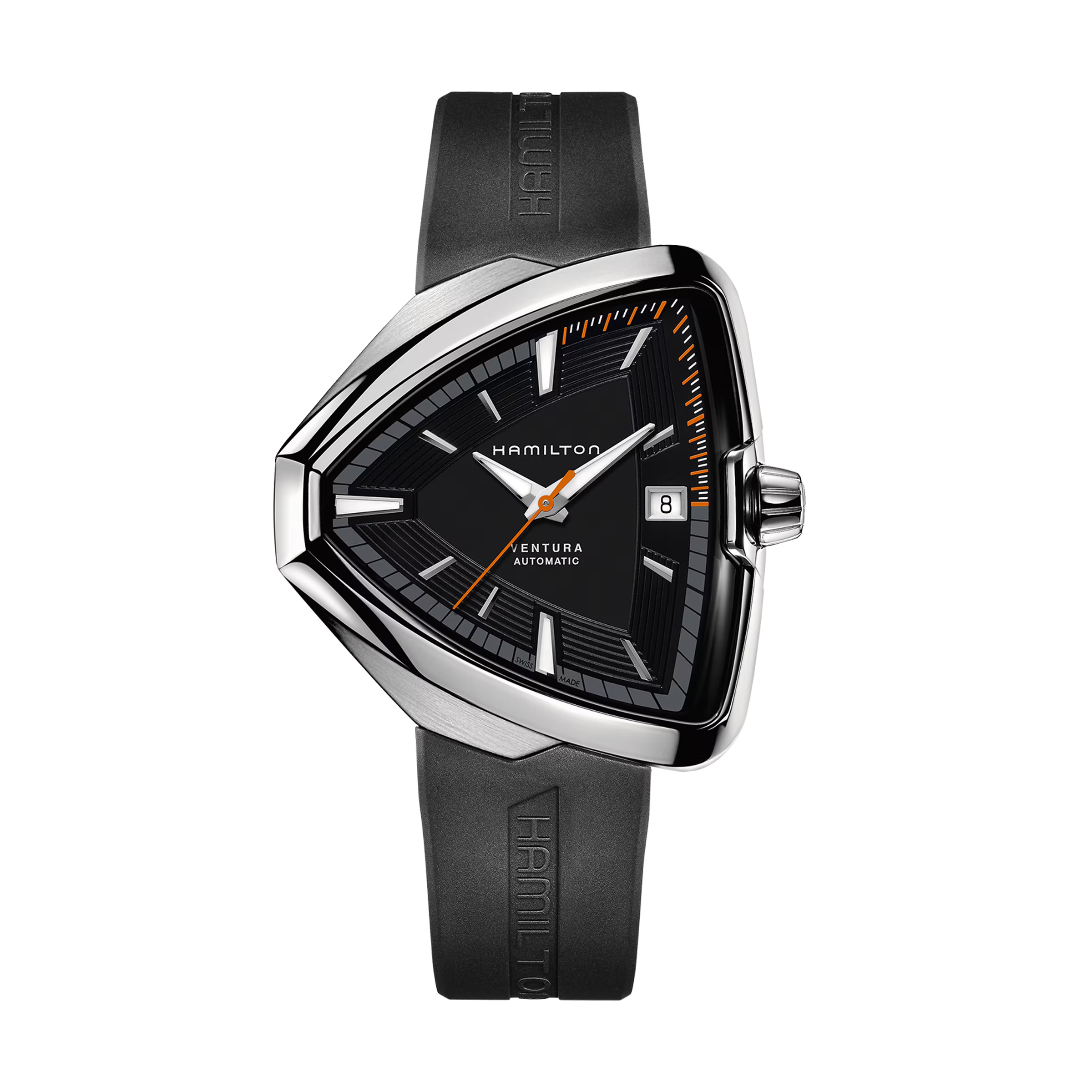 De Hamilton H24555331 is een opvallend herenhorloge uit de Ventura-collectie, bekend om zijn iconische en futuristische design. Dit model onderscheidt zich door zijn unieke driehoekige kast, die direct doet denken aan de revolutionaire look waarmee Elvis Presley de Ventura wereldwijde faam bezorgde. De H24555331 is uitgevoerd in hoogwaardig roestvrij staal, met een zwarte wijzerplaat en zilverkleurige accenten voor een moderne uitstraling. Het horloge is uitgerust met een automatisch uurwerk, een krasbestendig saffierglas en een comfortabele lederen band. De Hamilton Ventura H24555331 is niet alleen een tijdsinstrument, maar ook een echt stijlicoon – perfect voor wie houdt van durf, traditie en innovatie.